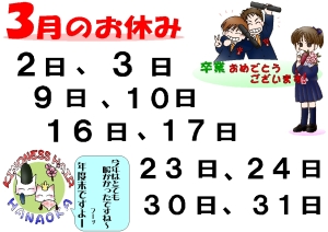 3月のお休みです。